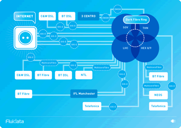 Fluidata operates a redundant multi-site core network out of London with multiple points of presence at the Redbus Datacentres, as well as Telehouse North and London Hosting Centre. These are interconnected on a redundant 10 Gb/s fibre ring. We are currently planning a new PoP outside central London for added redundancy.